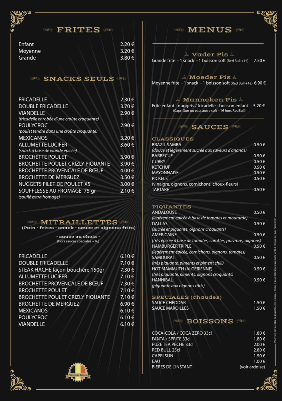 Food truck au top.... De quoi bien vous remplir l'estomac. Accueil sympa et chaleureux. La Belgique et ses frites au rendez-vous. Je recommande amplement....!