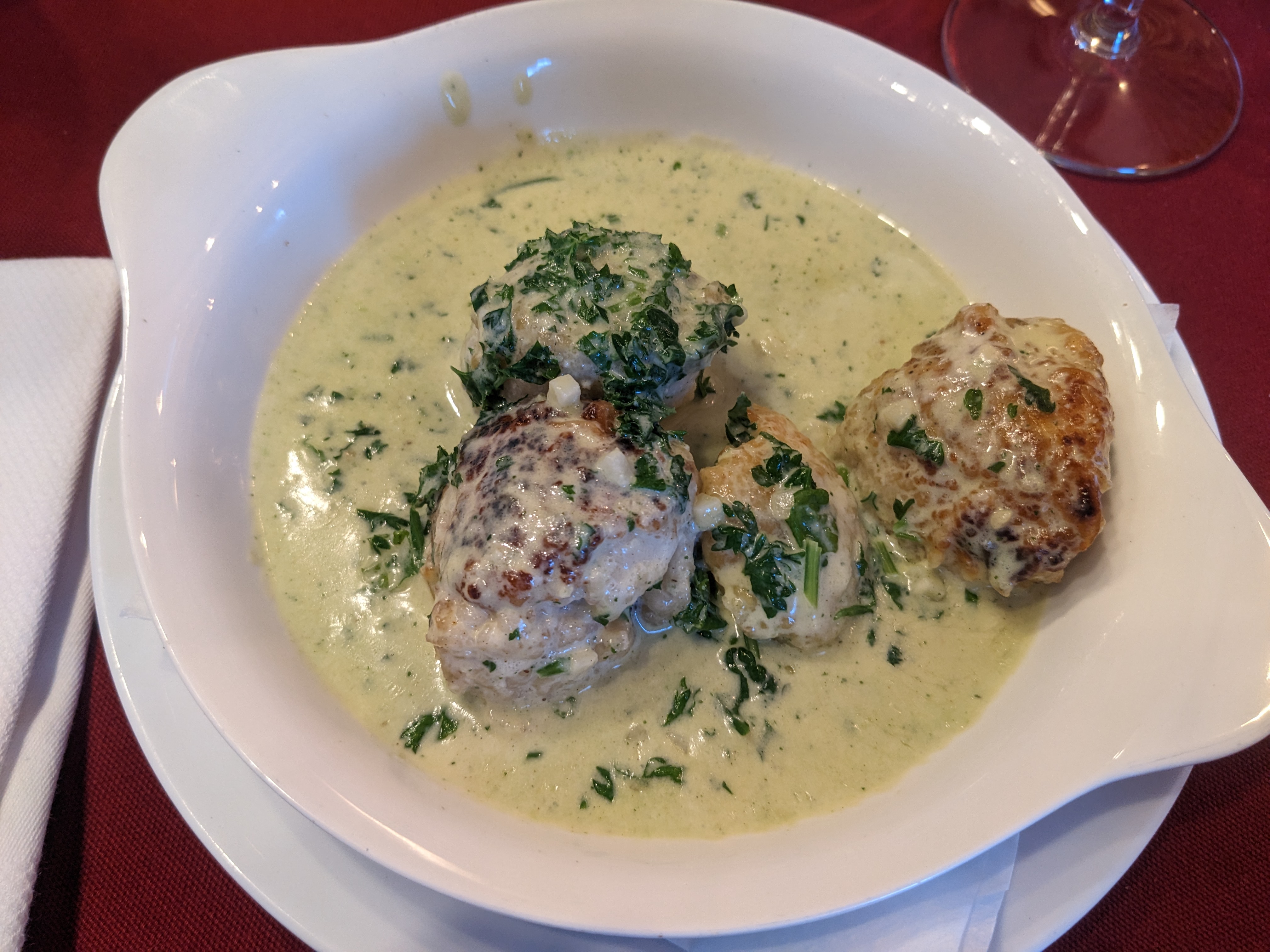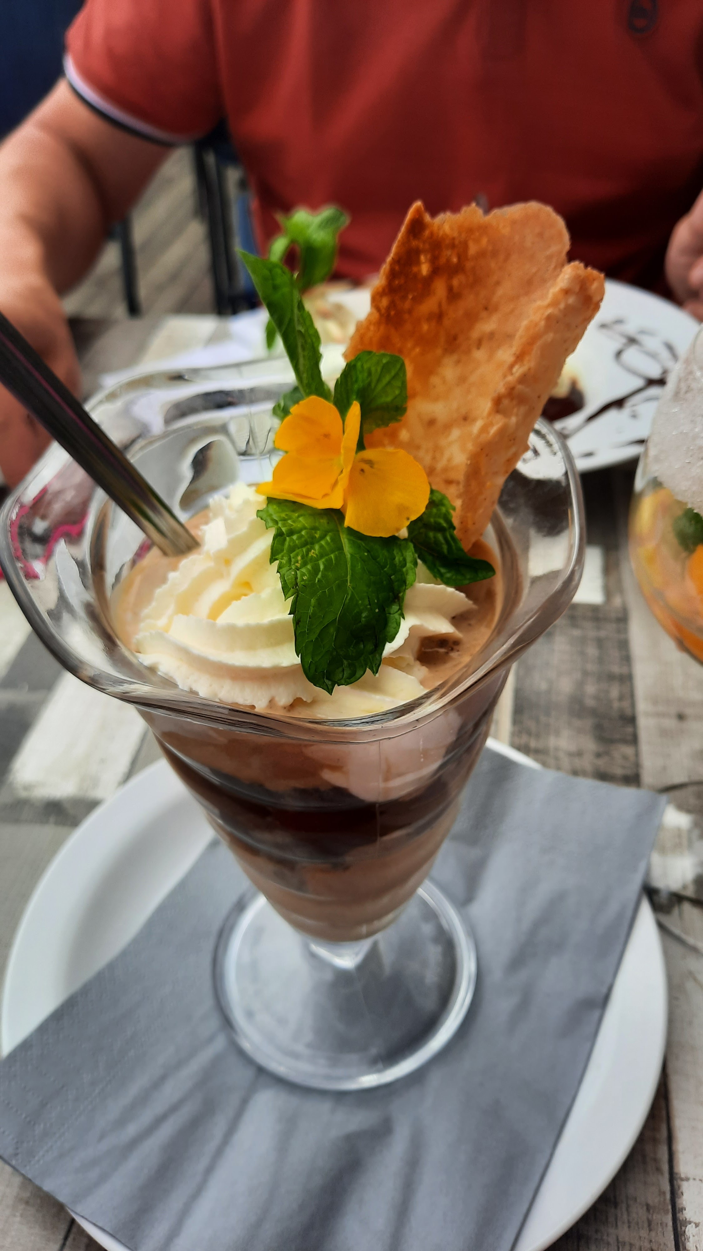 Accueil, service, plat rien à dire par contre obligé de couper mes profiteroles au couteau tellement dure même à mâcher et malheureusement on nous a répondu qu'en Belgique c'est comme ça....meme le chocolat chaud n'a pas fondu la glace!dommage pour la mauvaise foi juste nous répondre avec franchise que c'est un dessert surgelé !
