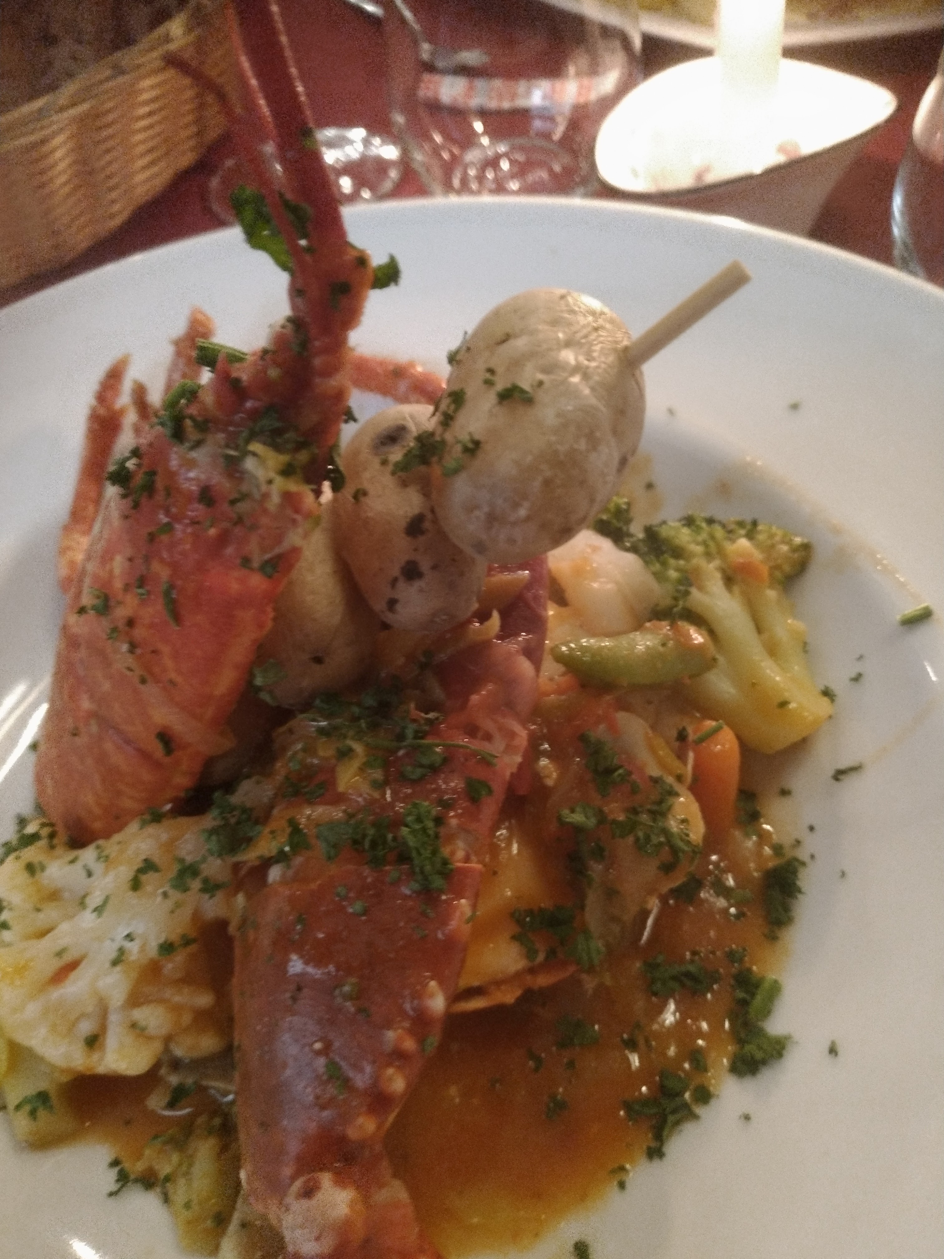 J'ai mangé un homard, excellent Cela m'a rappelé mon enfance quand avec mes parents ont allé manger au restaurant le dimanche midi. Un endroit a recommander Surtout n'oubliez pas de réserver.