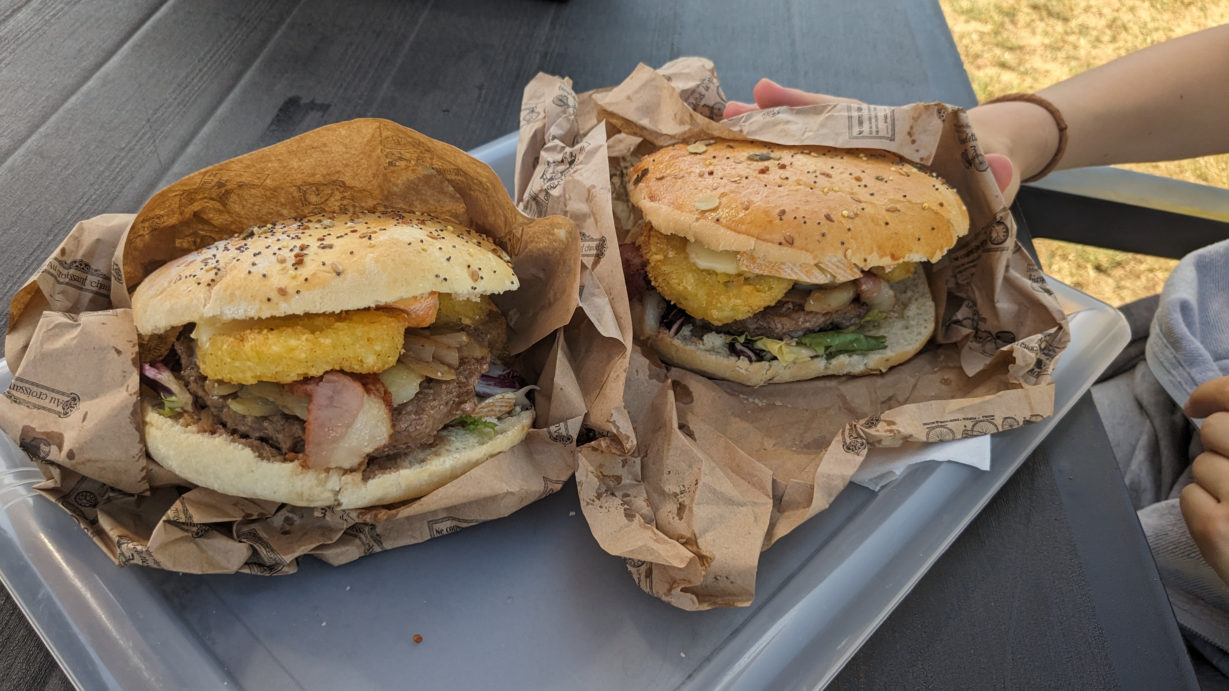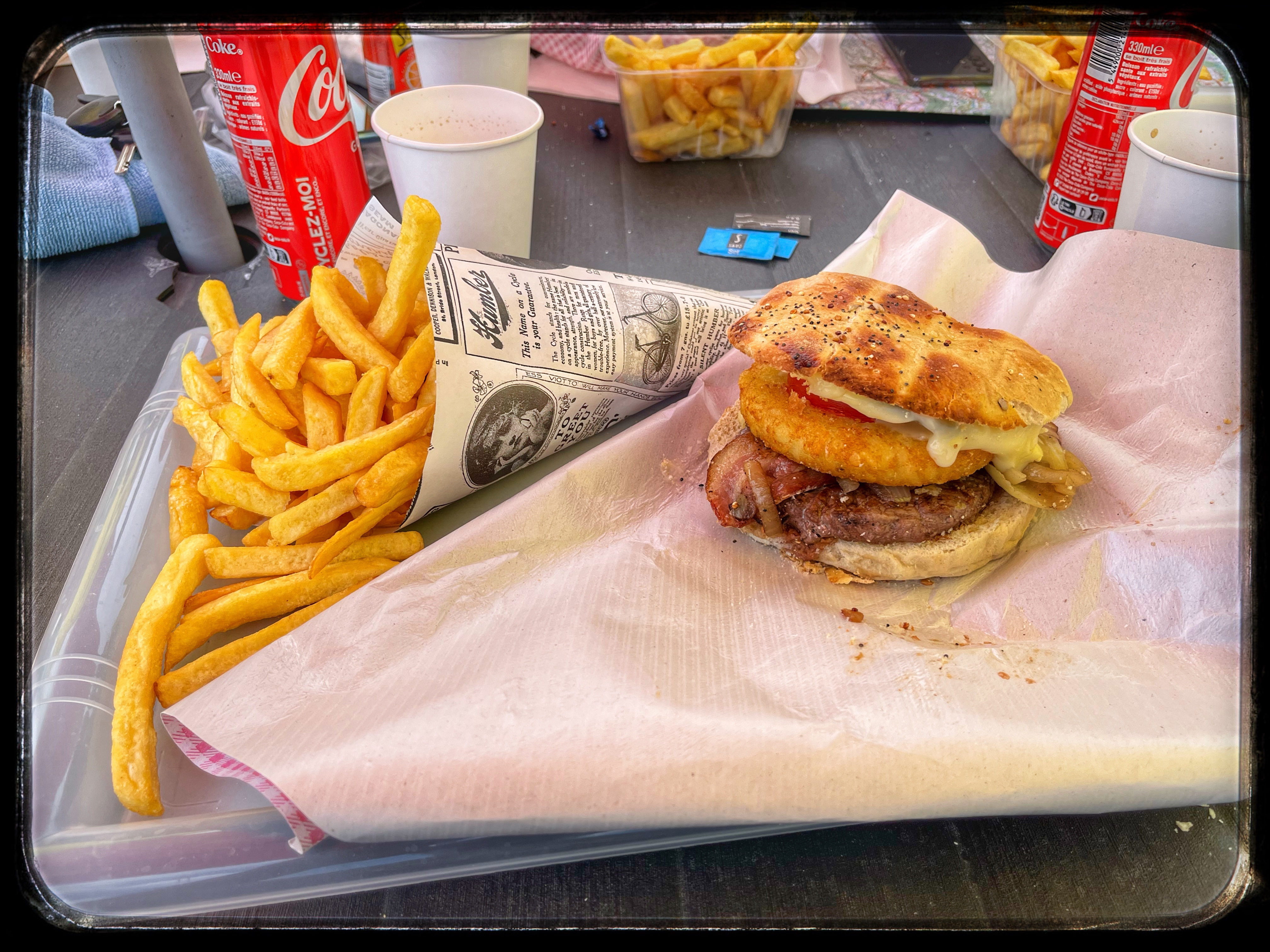 Excellent accueil, très bons burgers, gaufres à consommer sans modération, prêt d’un compresseur pour regonfler les pneus, pelouse très confortable pour la sieste, … Bref : endroit à ne pas manquer 😃