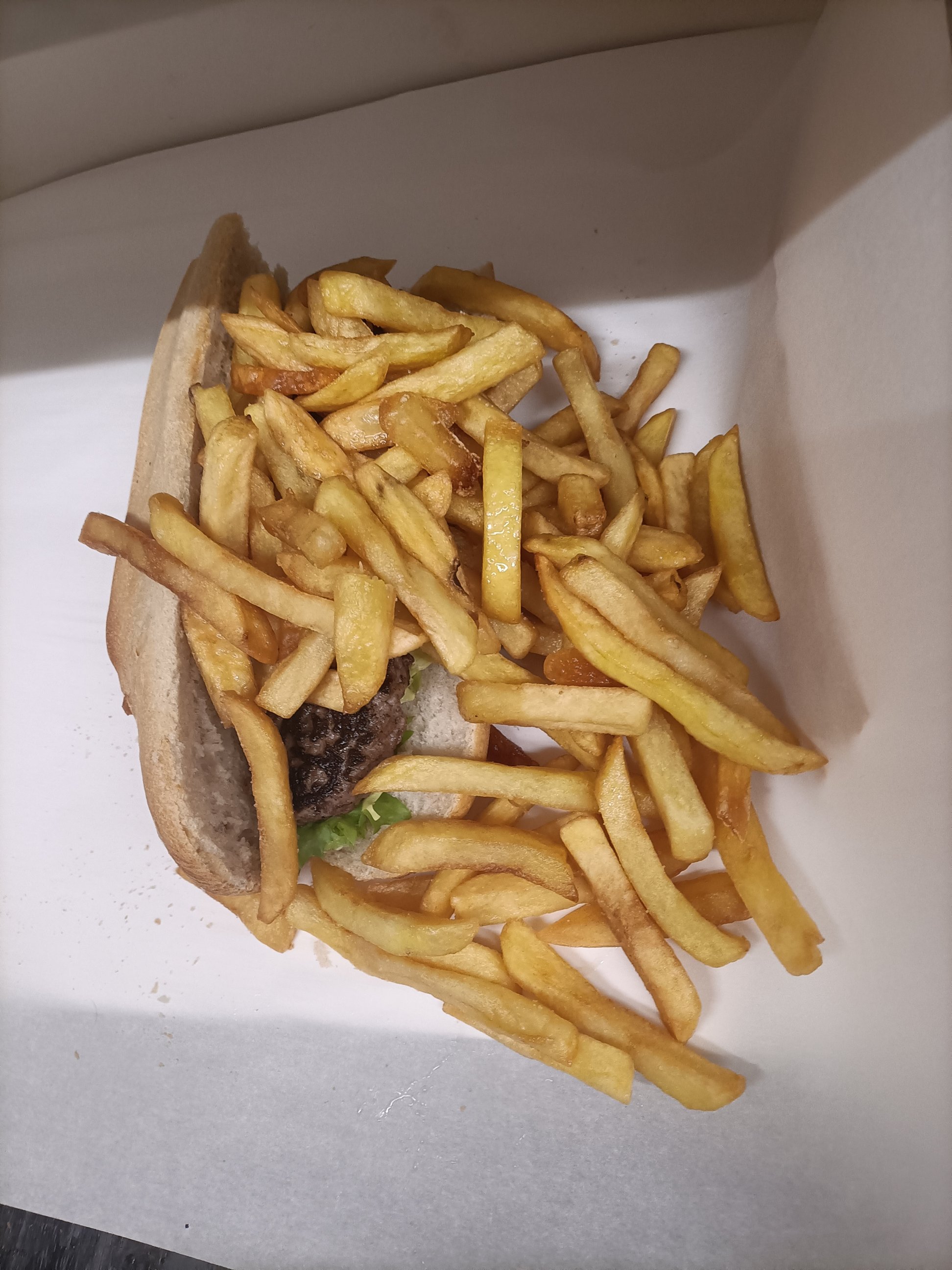 Très bon hamburger copieux et bien servi personne aimable j'y retournerais avec plaisir je conseille vivement vous serez pas déçu 😊😋