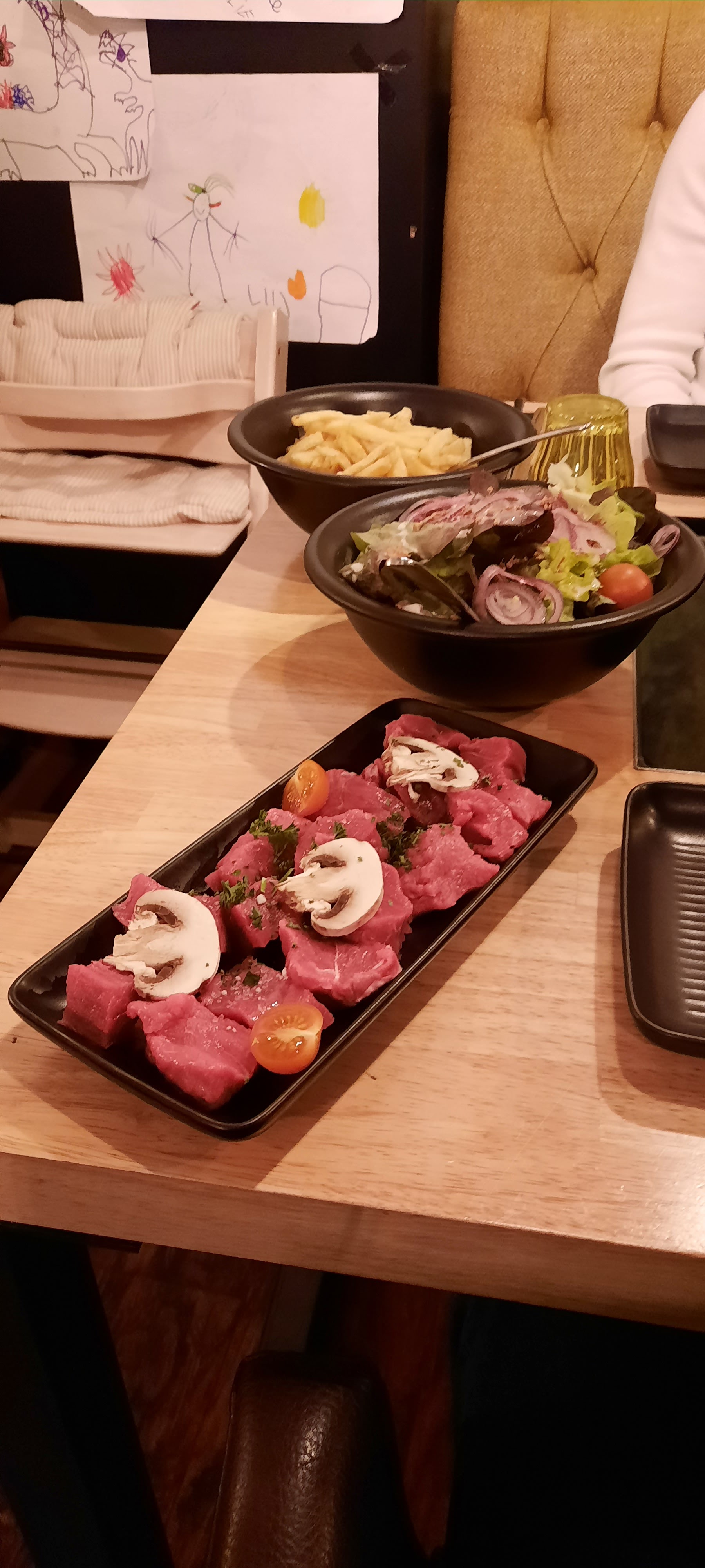 Excellente fondue bourguignonne accompagnée de frites extra et d une salade composée. Patron très accueillant.