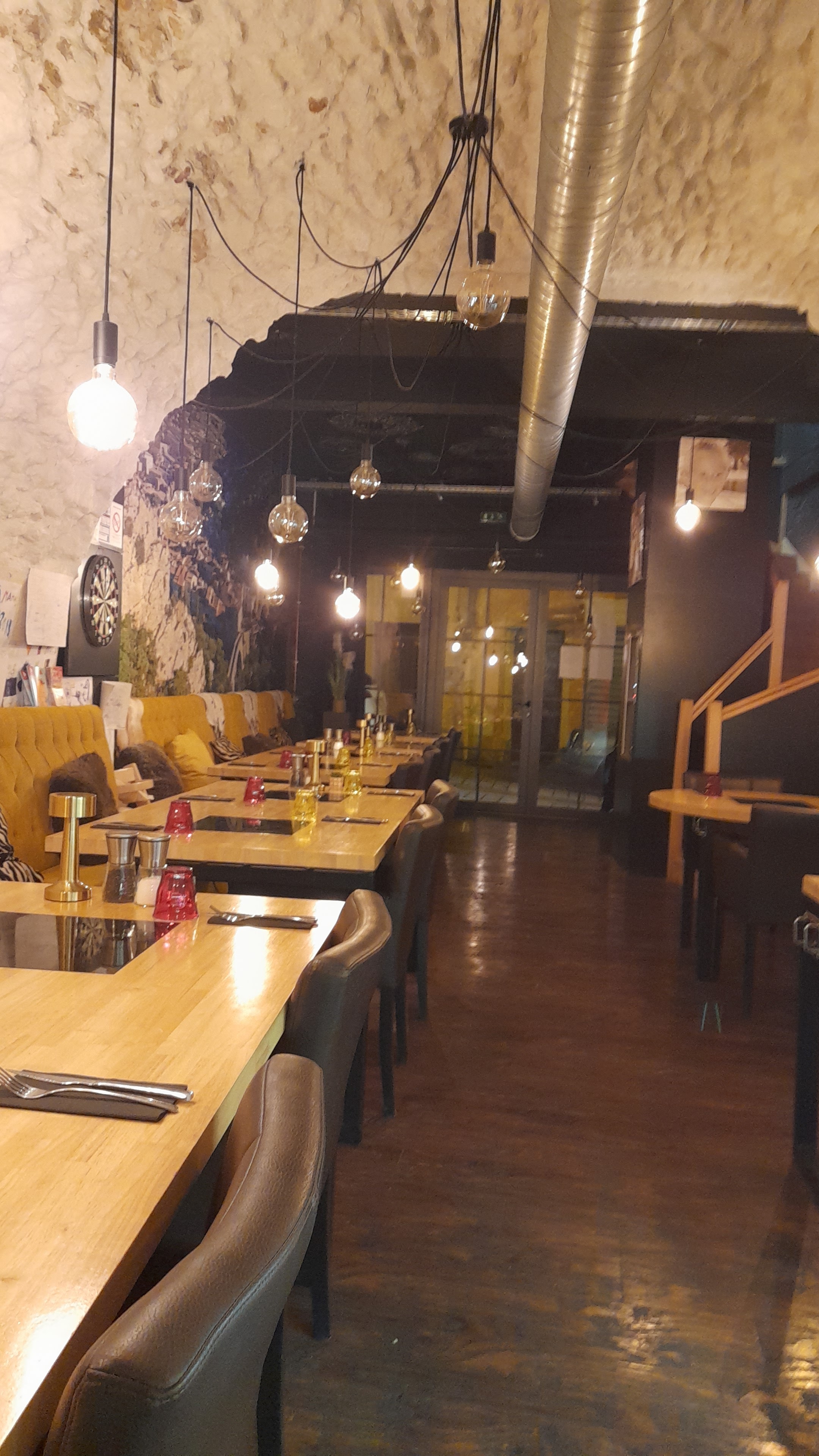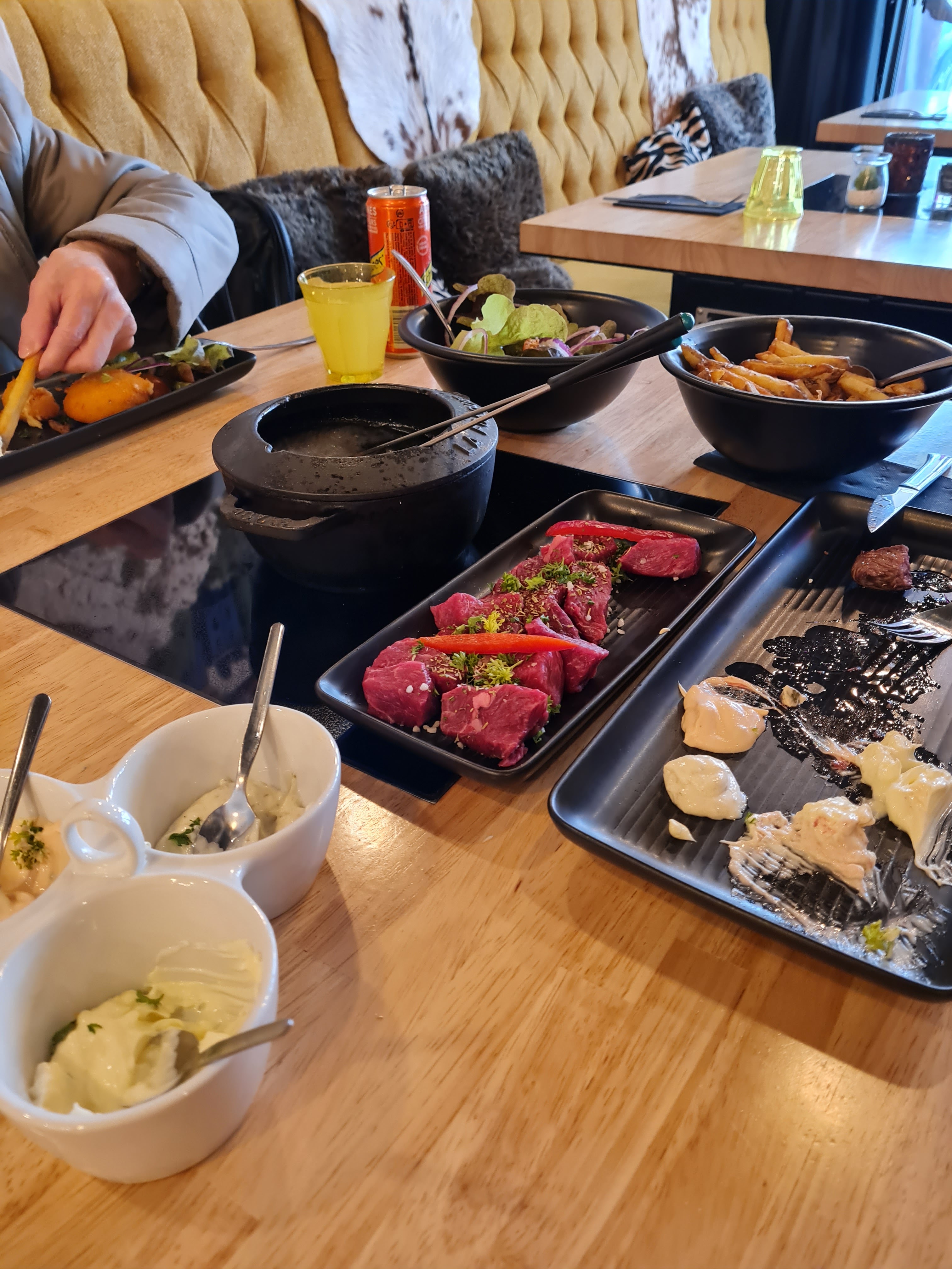 Restaurant très agréable et cosy. La fondue à la viande était très savoureuse. Le succès a été la plaque vitrocéramique insérée dans les tables. Cela signifiait que le caquelon à fondue pouvait être réchauffé directement sur la table. Bons vins et hôtes formidables. Nous recommandons.