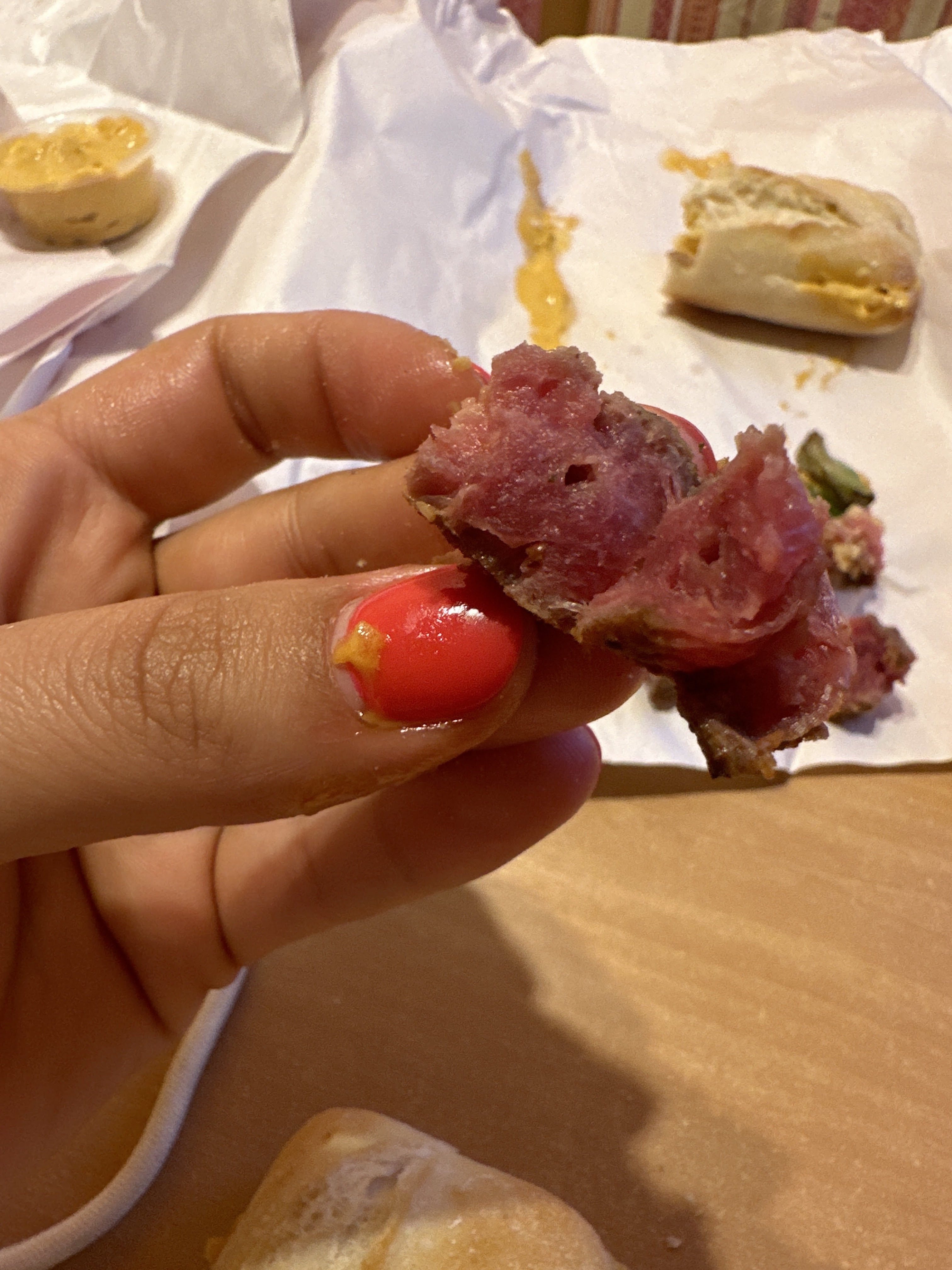 Bonsoir je suis désolée ,pour le désagrément je vous invite à vous offrir une nouvelle brochette lors de votre prochain passage passez une belle soirée. Karo