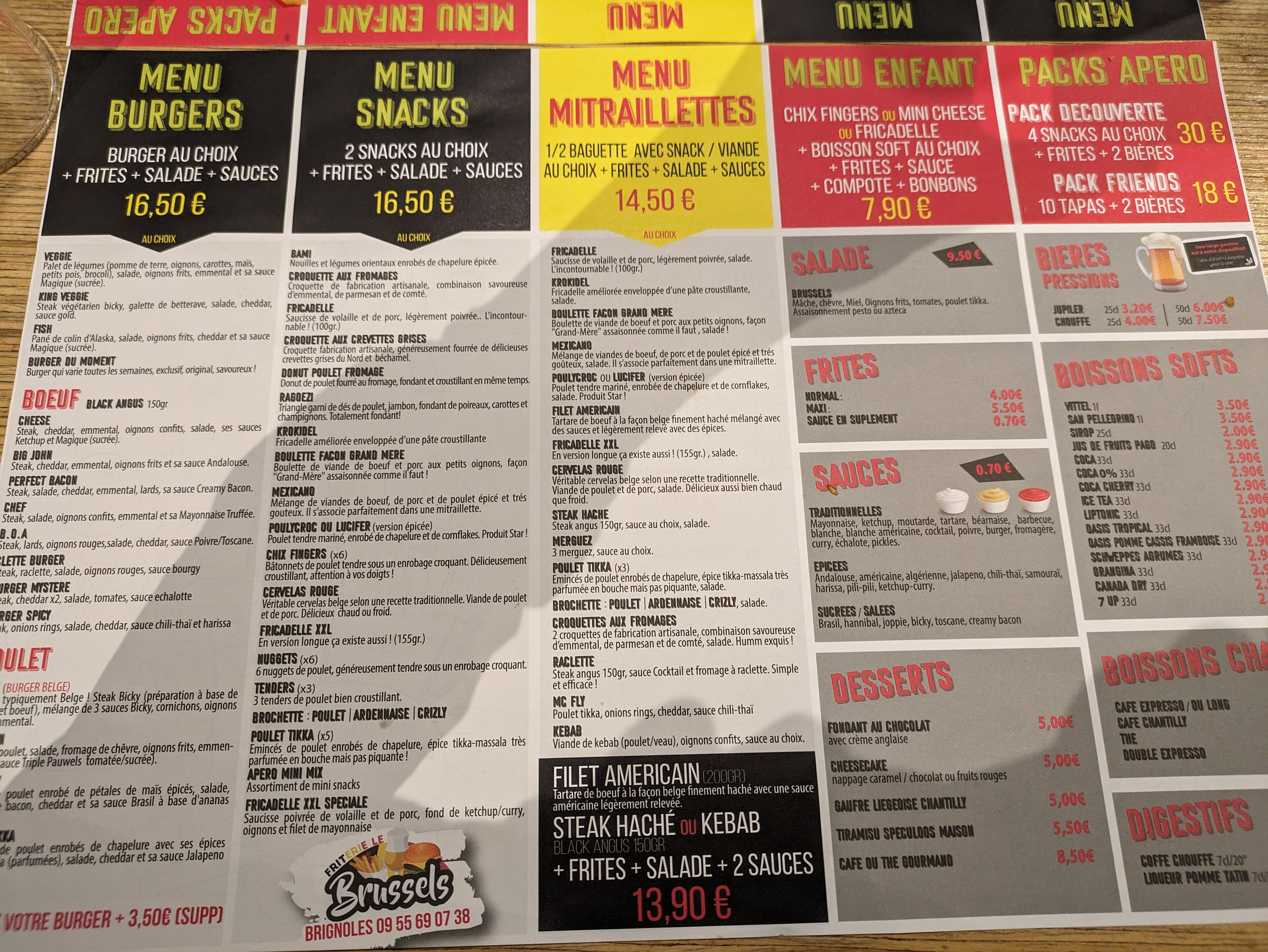 Une équipe super sympa, une belle carte de bières et bien sûr les frites fraîches avec les spécialités belges. Tout ça à tarif très raisonnable.