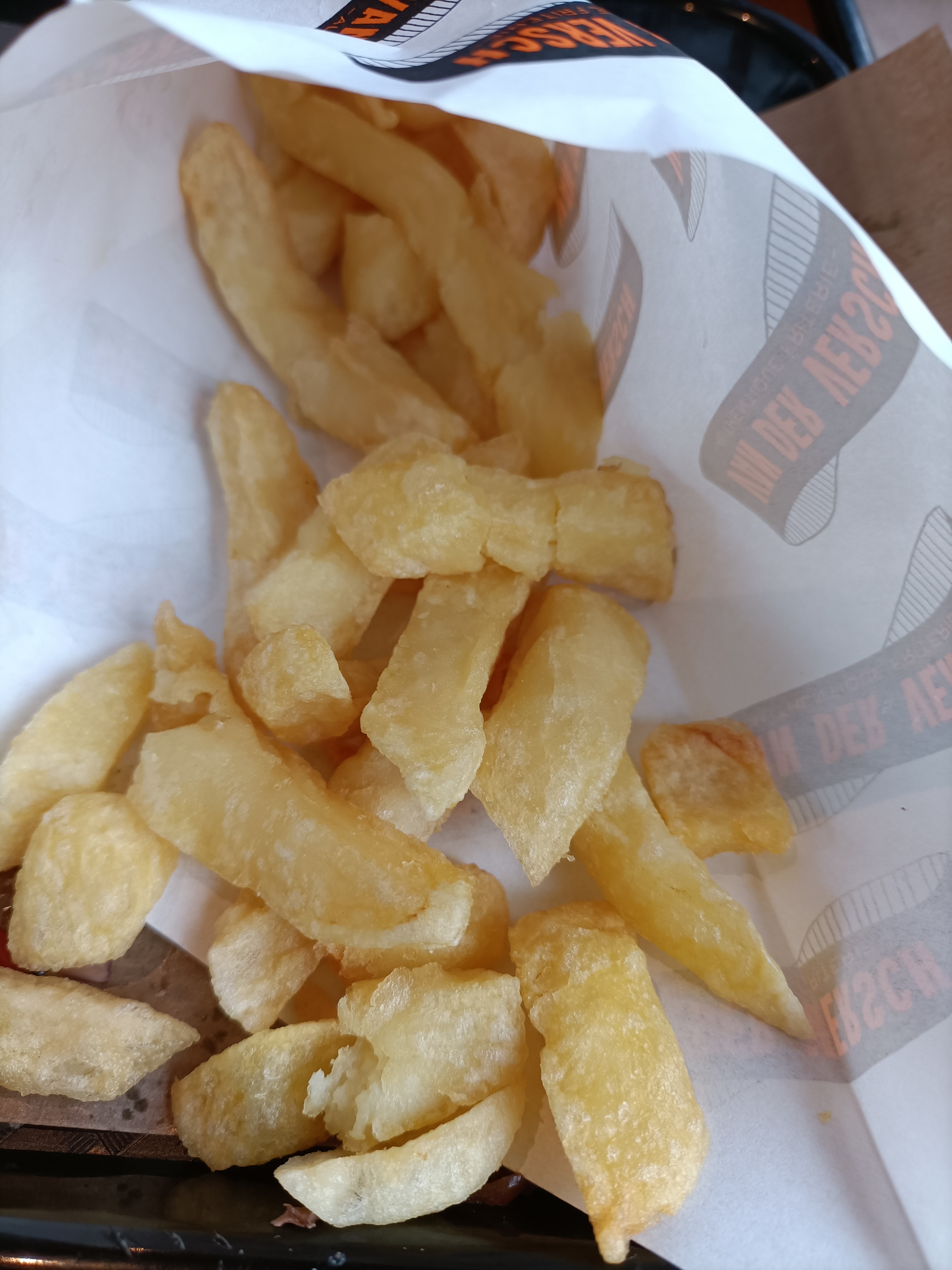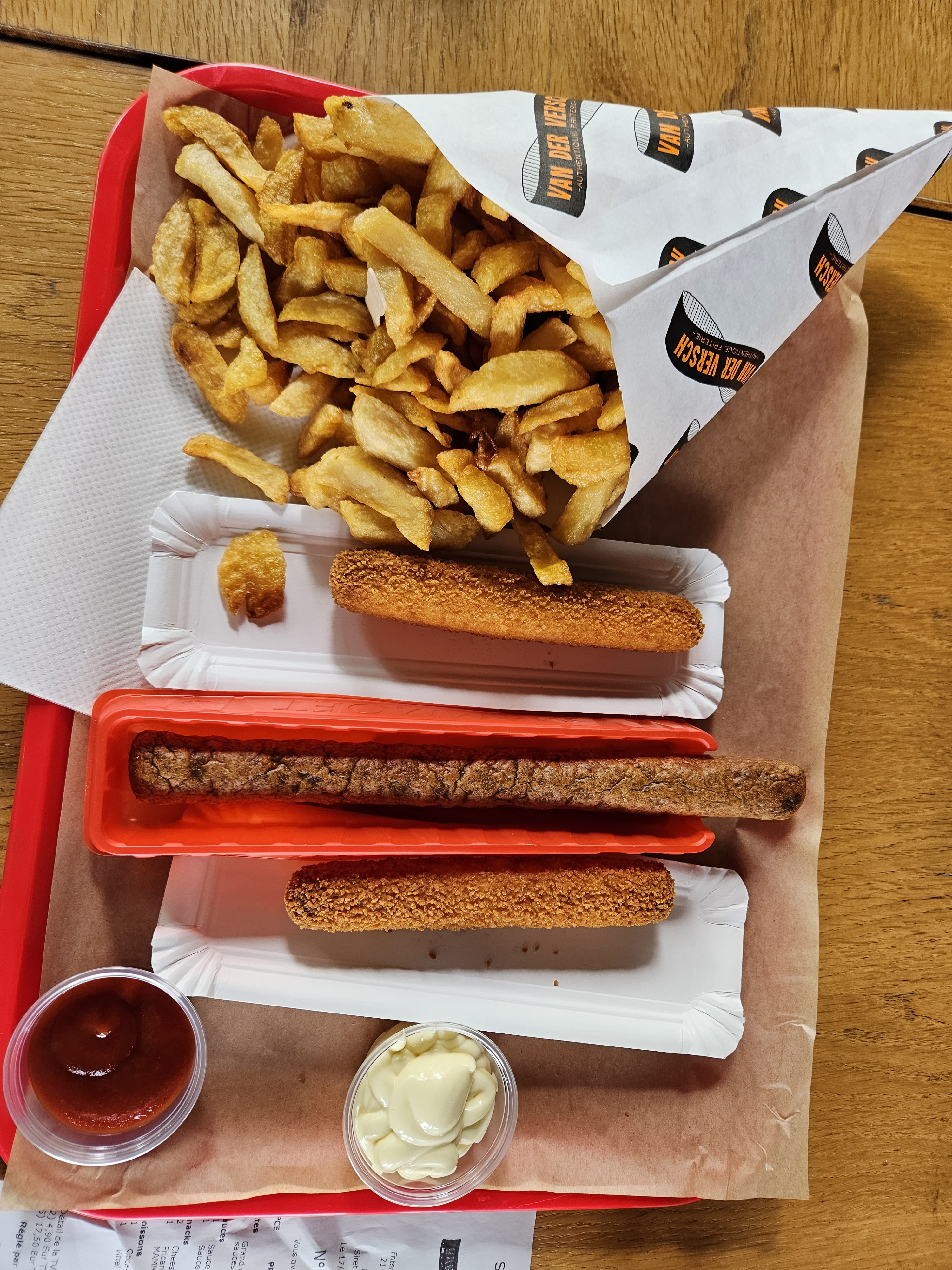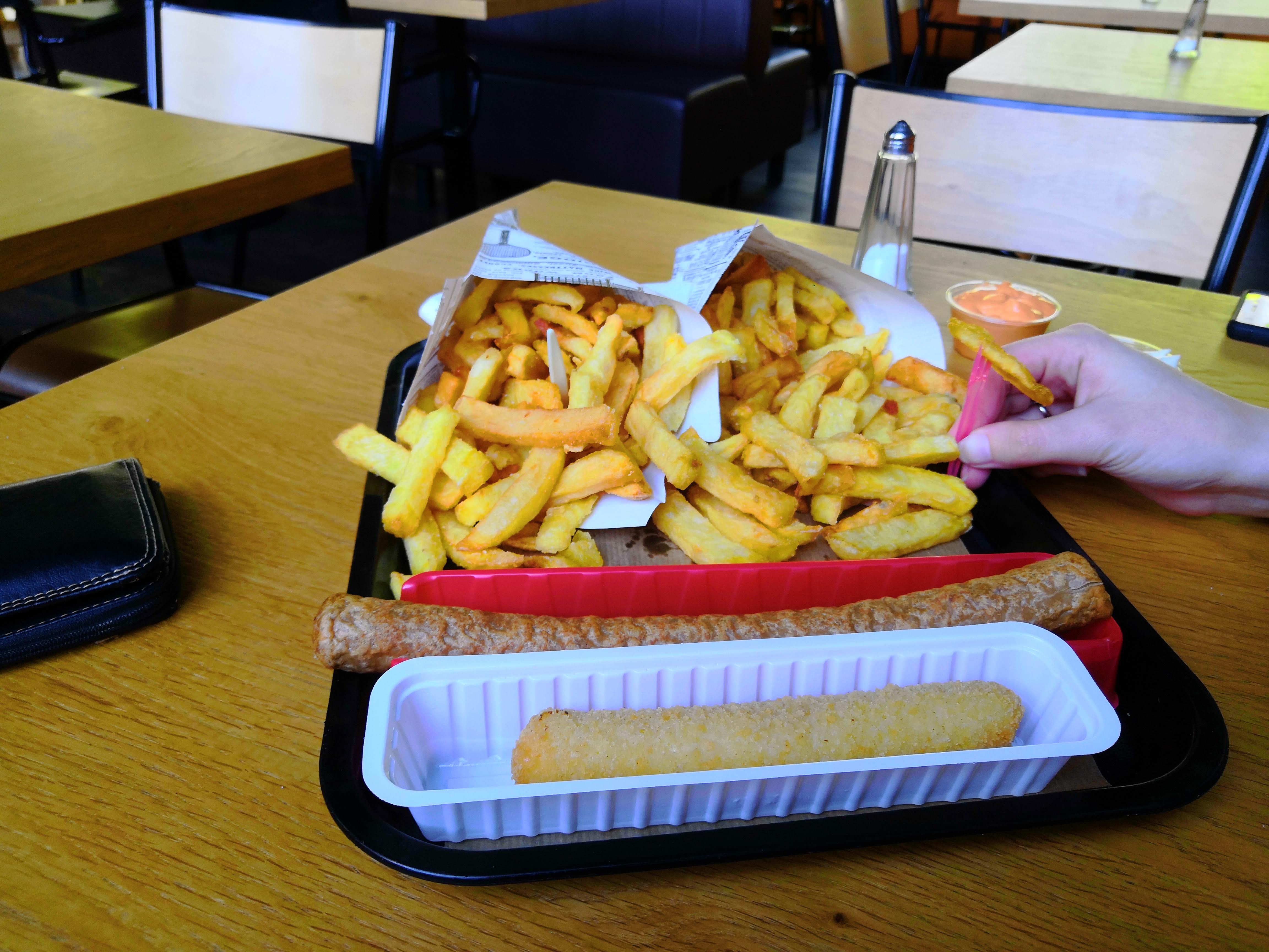 Les frites sont très bonnes et bien servies en taille normale. J'ai tester la fricadelle mammouth, servie tieti dans une barquette en plastique, même si foncièrement pas mauvaise, l'intérêt est assez limité. Pas pratique a manger car rien pour couper. Prix un poil élevé