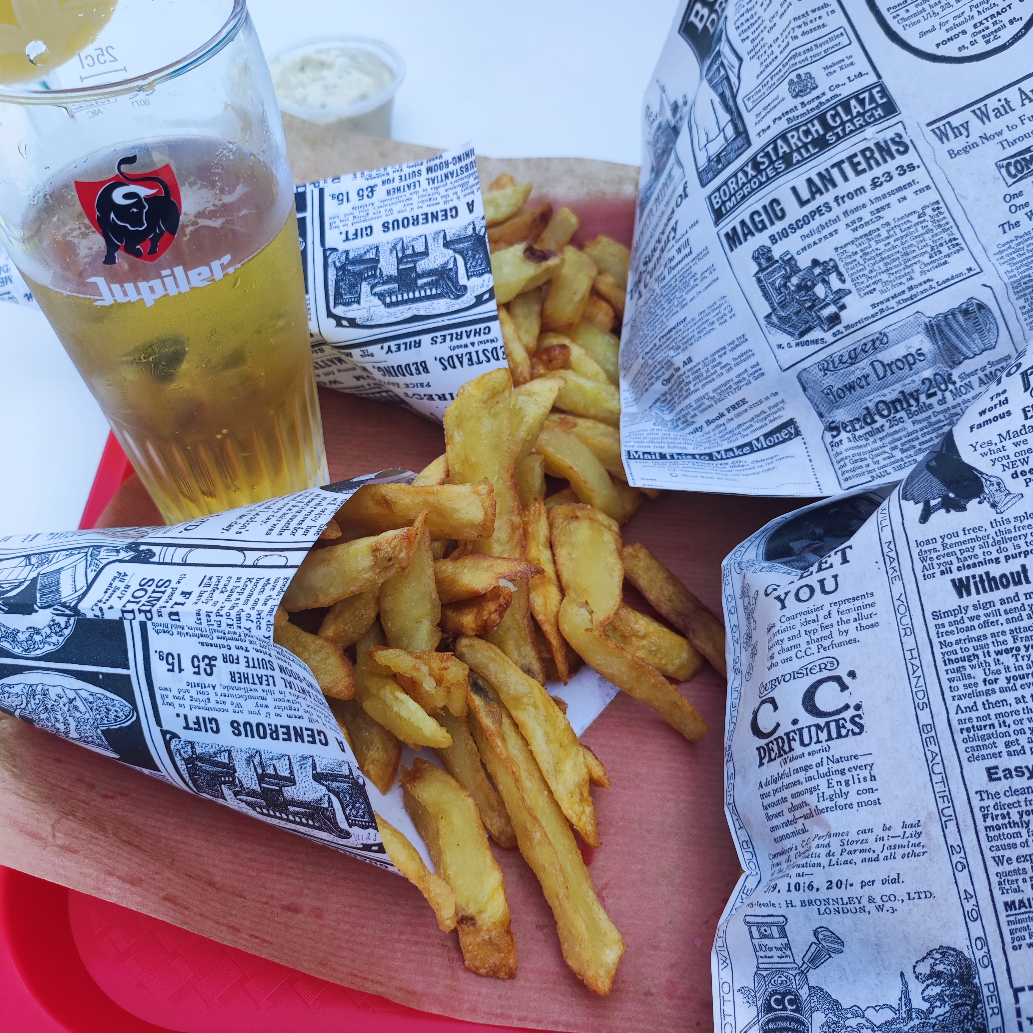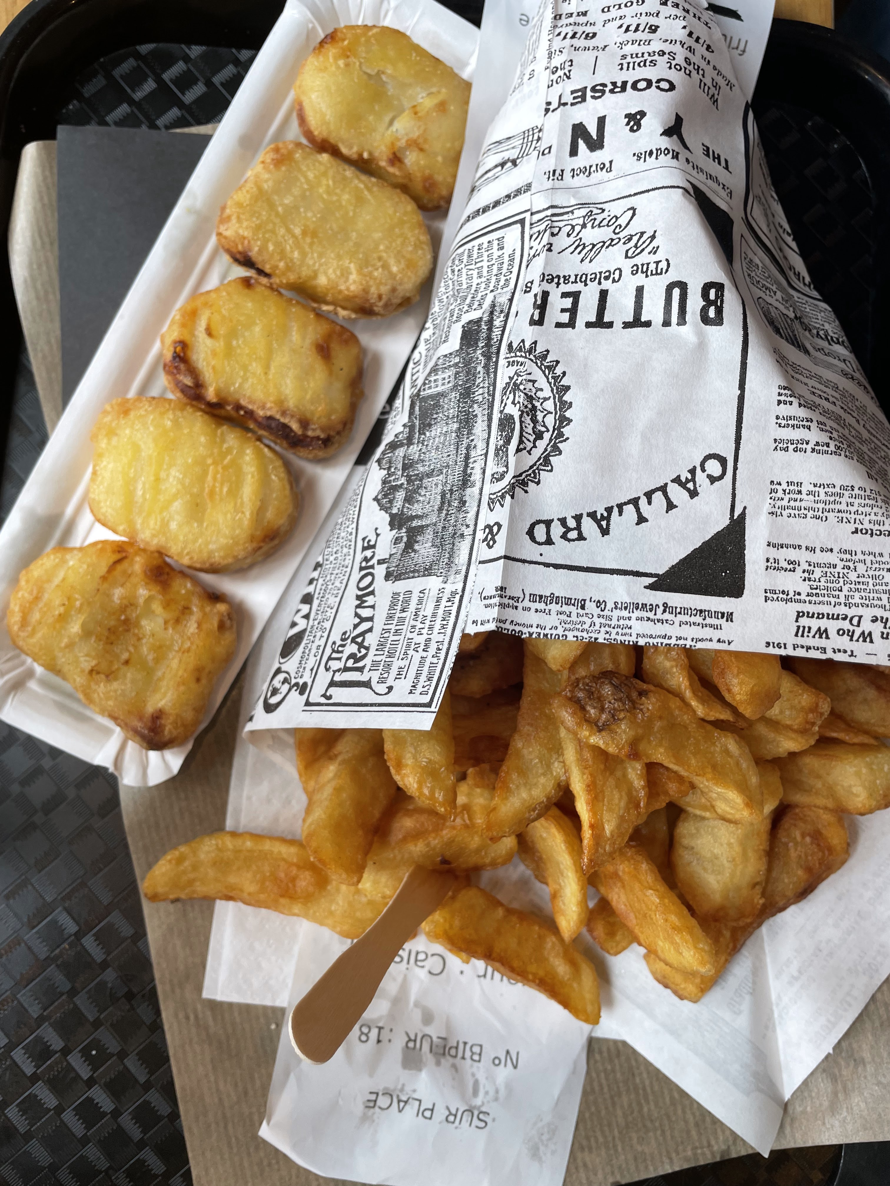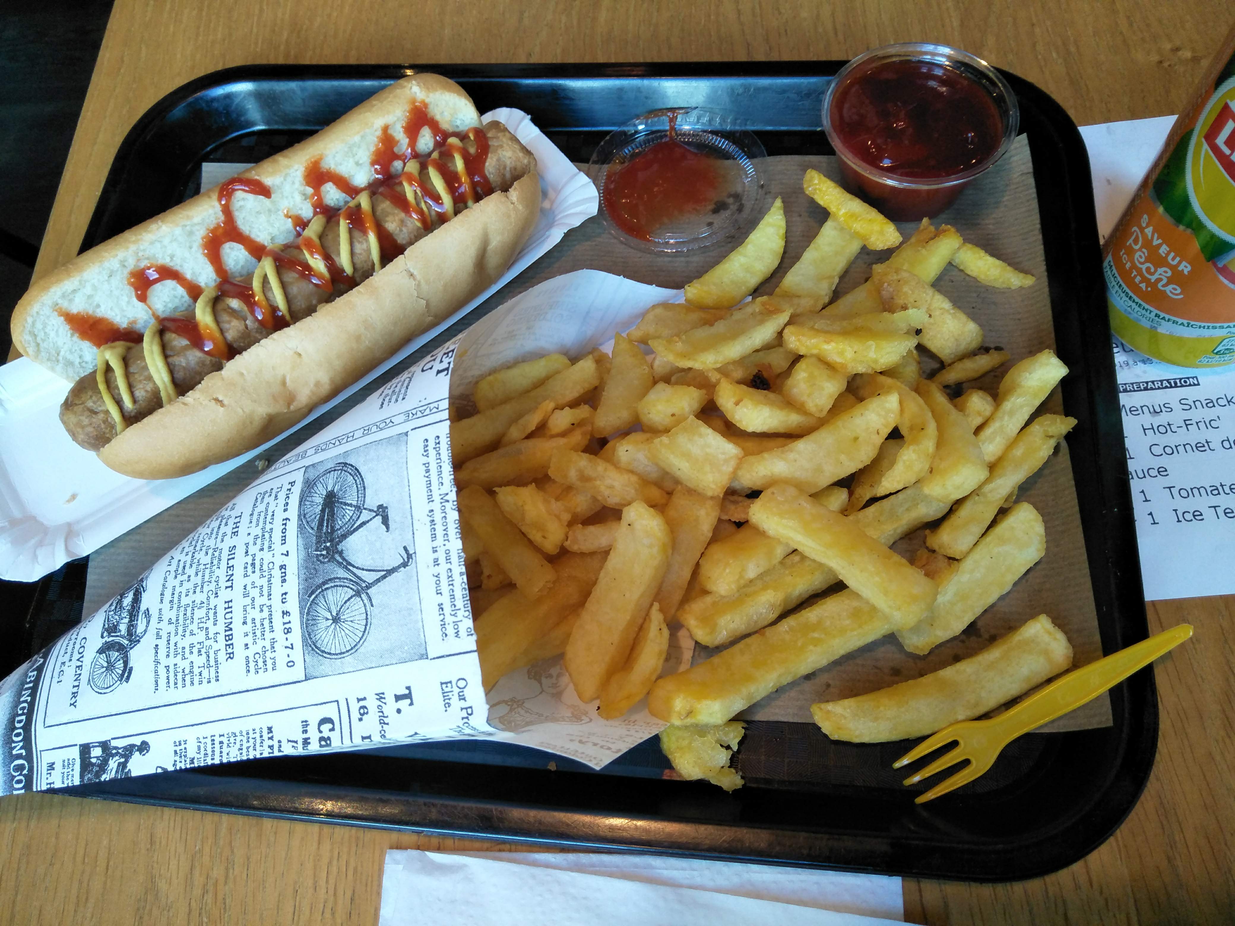 Les frites sont très bonnes et bien servies en taille normale. J'ai tester la fricadelle mammouth, servie tieti dans une barquette en plastique, même si foncièrement pas mauvaise, l'intérêt est assez limité. Pas pratique a manger car rien pour couper. Prix un poil élevé