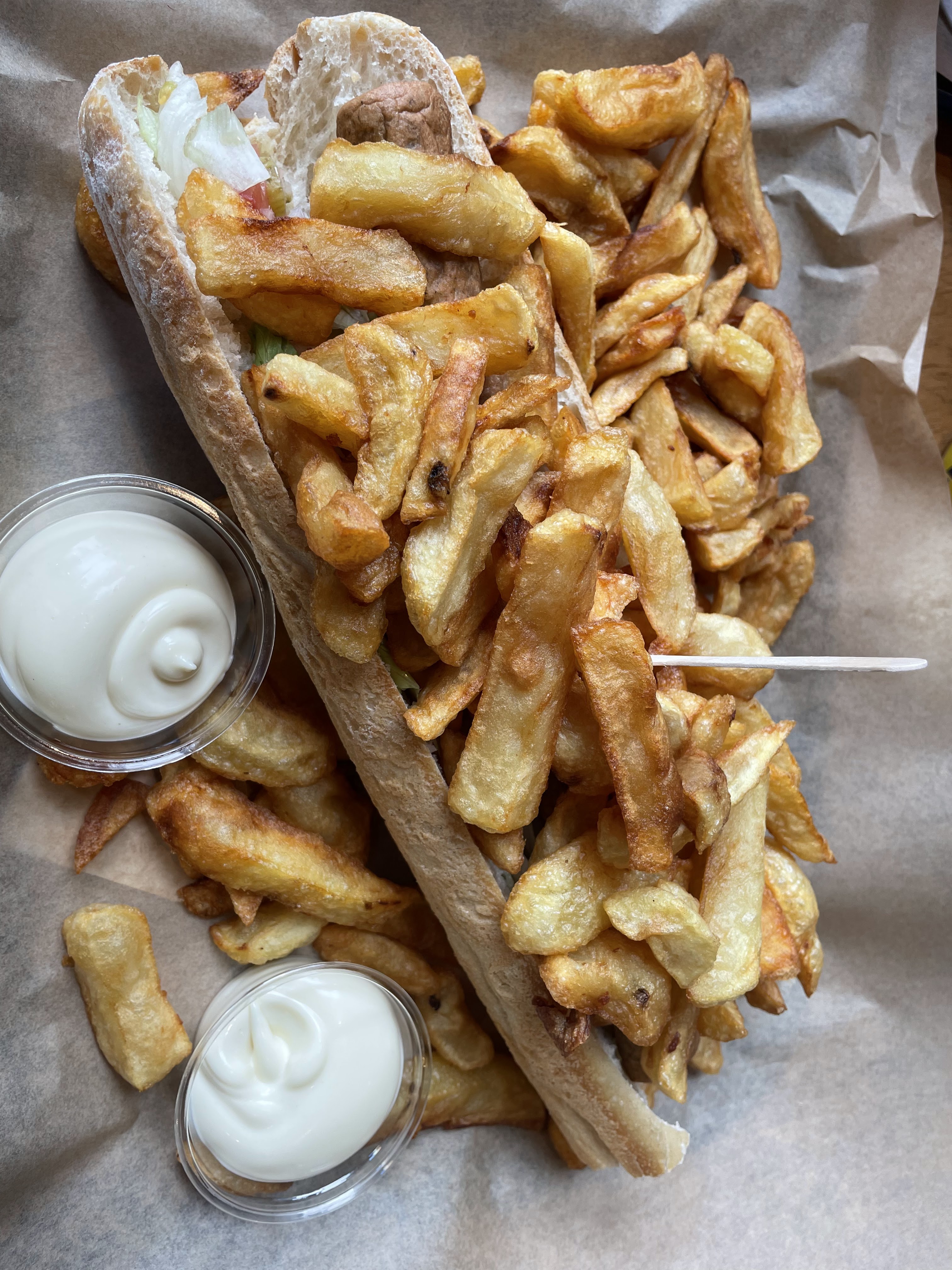 Expérience mitigée, la personne au comptoir m'informe qu'ils sont limités en frites et que je ne peux prendre qu'un cornet S, étonnant pour une friterie, mais soit. Le cornet S était très bien fourni et d'une taille impressionnante, mais hélas les frites un peu molles et bien trop huileuses. Je ne pense pas y retourner.