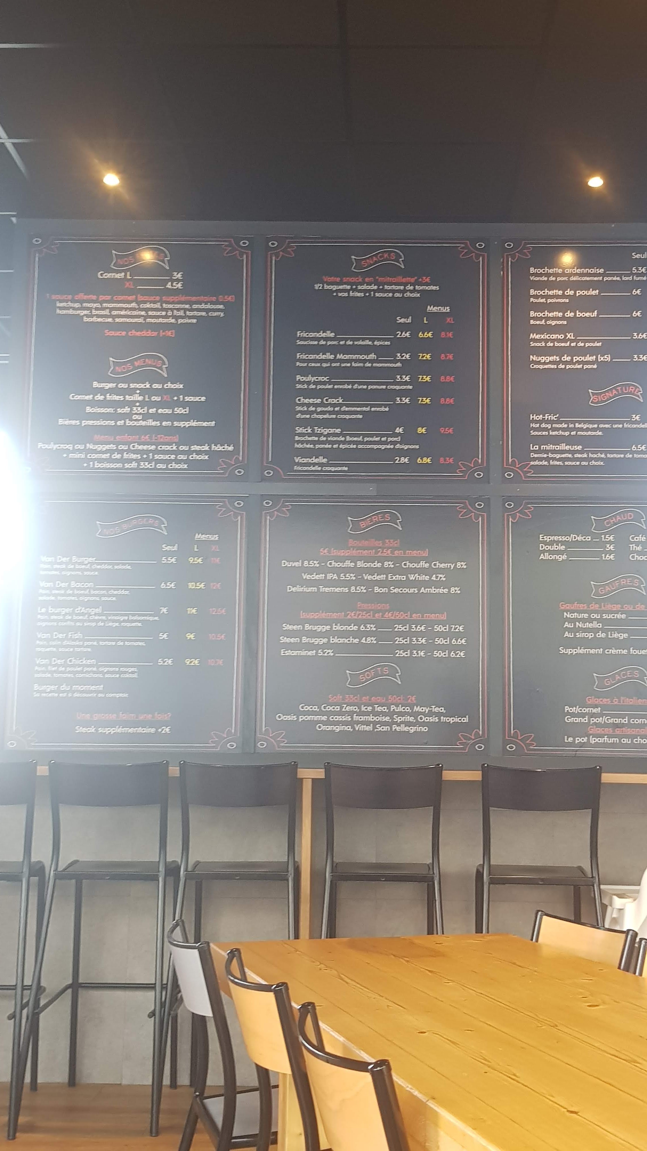 Carte difficile a appréhender quand on ne connait pas les spécialités Belges, mais c'est intéressant de découvrir une nouvelle cuisine. Frites très bonnes, bien croustillantes et dorées. Niveau burgers par contre nous avons été très déçu de la qualité de leur viande, et de la taille du burger. Rapport qualité/prix décevant. Et manque de places assises.