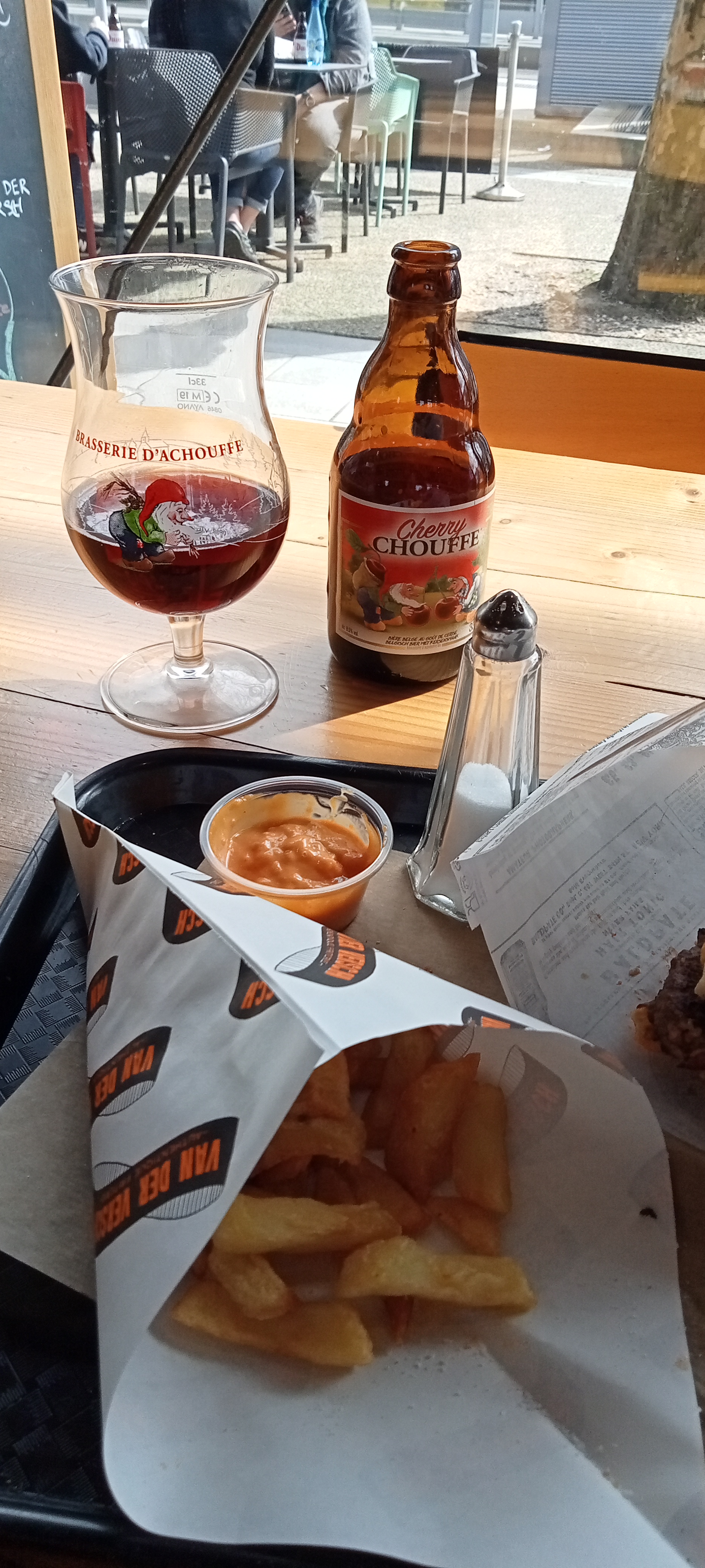Trés bon emplacement . Burgers , frites et fricadelles corrects . Concept de fast food belge interessant .