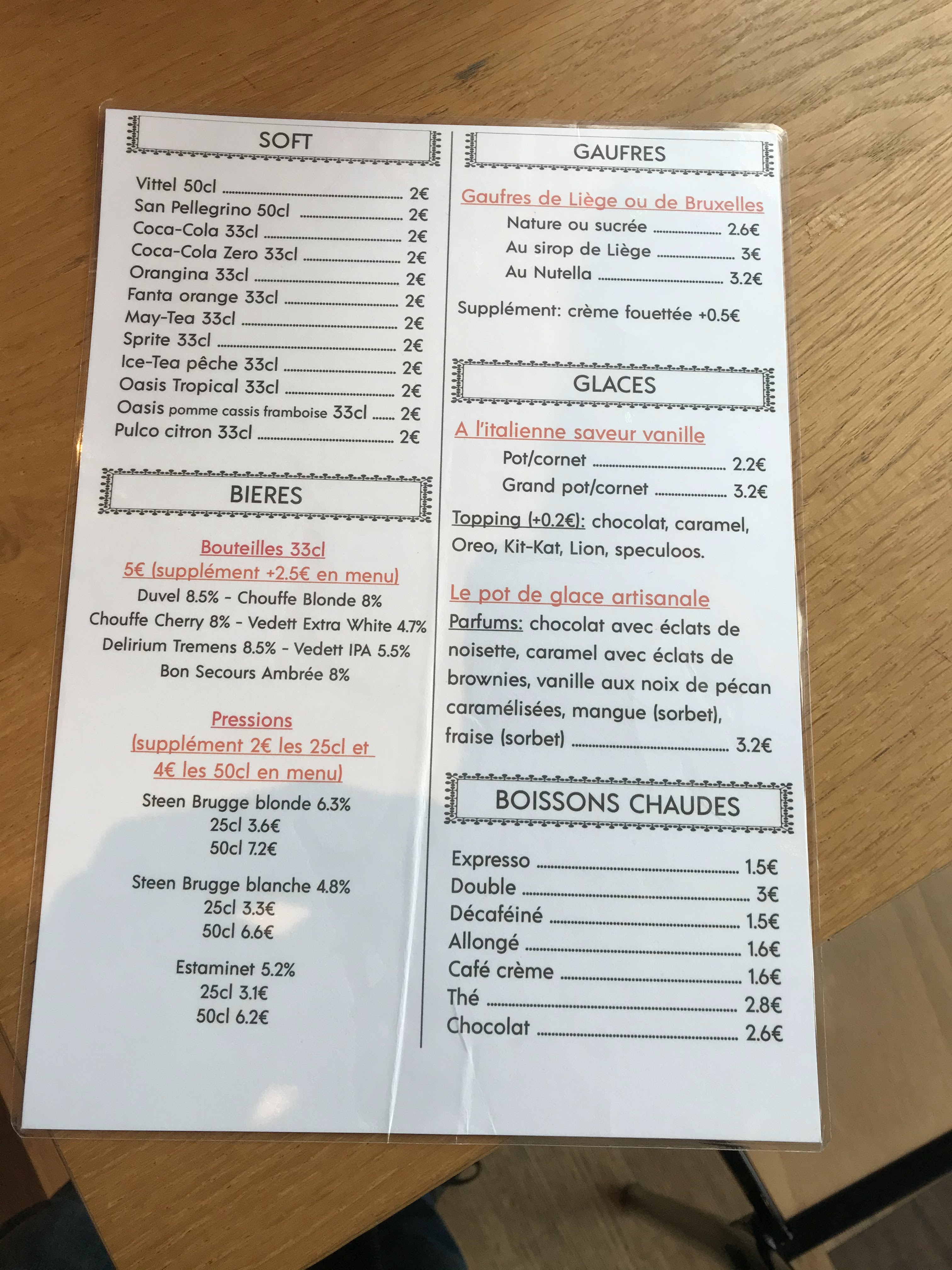 Si J’avais pu mettre zéro étoile je l’aurais fait. Mon chéri rêvait d’une gaufre belge. Apparemment la nourriture de ce restaurant est typique de Belgique, je dirais plutôt typique du casino du coin. Même moi je suis plus belge que la gauffre. Si j’avais acheté une gaufre toute prête et que j’avais rajouté du Nutella ç’aurait été pareil ; pour le prix minable. De plus la gaufre était dégueulasse et froide. Même pas de serviettes FUYEZ.