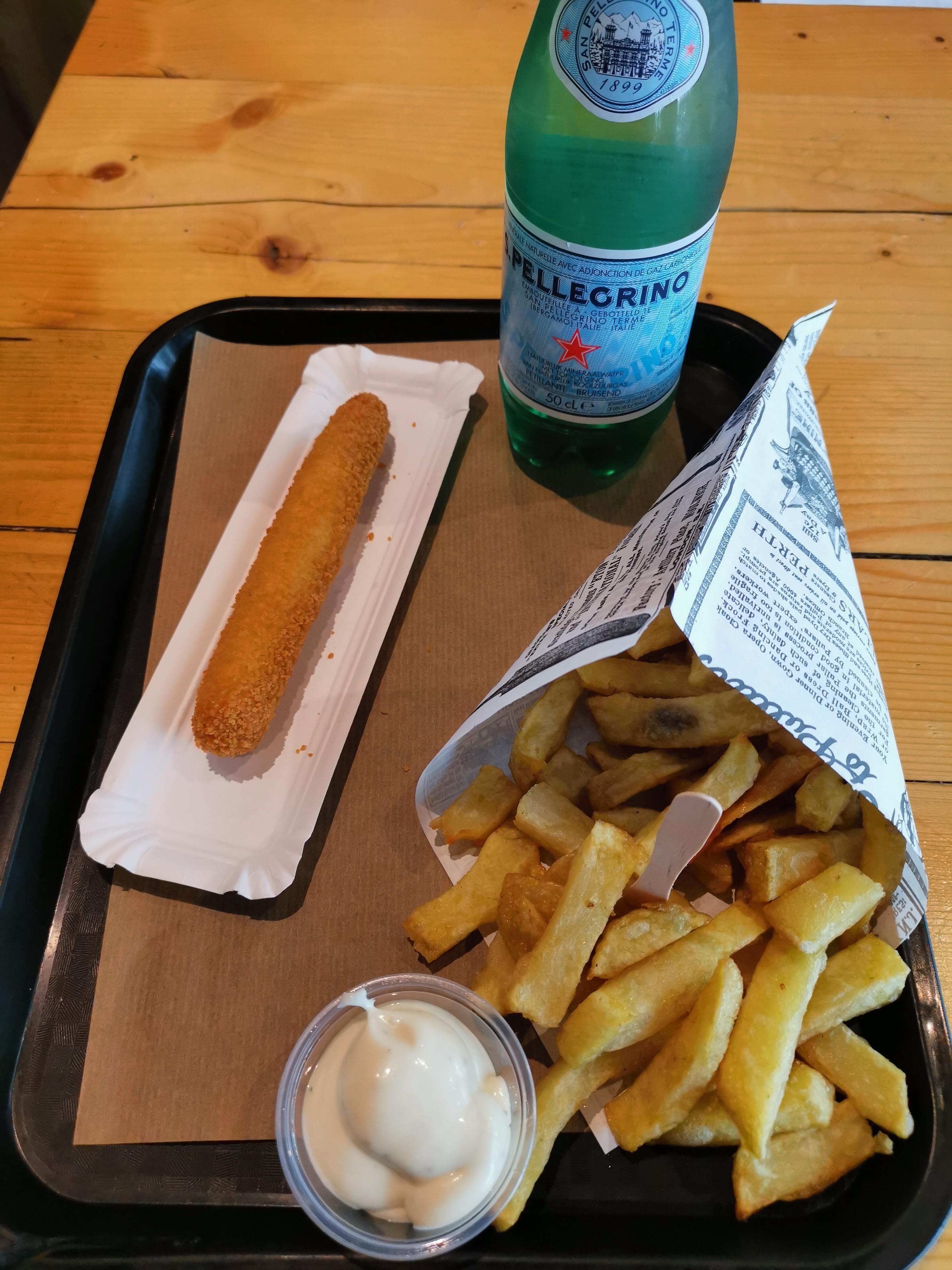 Les frites sont bonnes et typiques de la tradition belge, épaisses et croustillantes. La fricandelle façon hot dog plutôt savoureuse. Les prix sont dans la moyenne plutôt haute. Le service, en revanche, est vraiment un gros point noir. Les employés donnent l’impression qu’on les embête. La salle manque de charme et de chaleur.